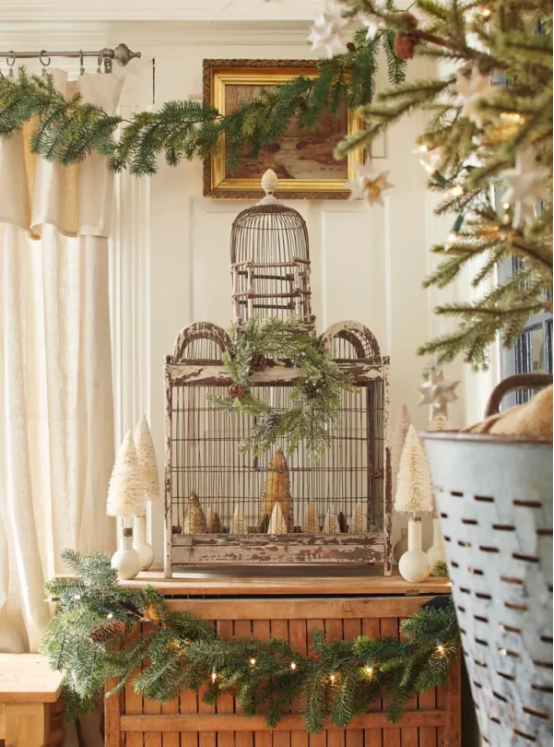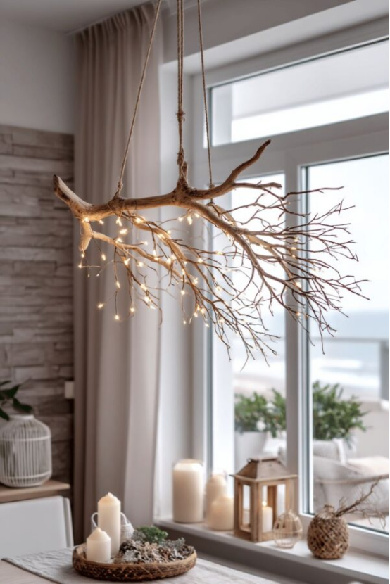 许多设计前卫的家庭正用雕塑感的树枝取代传统的圣诞树。光秃的树枝、漂白的木头或野外拾来的大型枝干,插入优雅的地面花瓶中,在不压垮空间的前提下创造出引人注目的垂直线条。你可以保持其极简风格,或者添加些微饰品、单色小球或微型LED灯串,营造柔和光晕。树枝装置在小空间、现代住宅或注重形态与质感的室内环境中效果绝佳。最终呈现的效果高级、有机且焕然一新,将简约转化为季节性的视觉焦点。