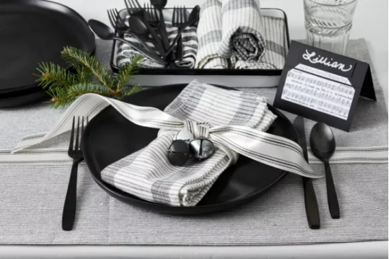 黑白餐桌布置是相对于常见节日红、绿、金色的时髦替代方案。通过将哑光黑色餐盘与白色亚麻搭配,或将抽象陶瓷与极简蜡烛混搭,你能营造出一种精致且富有艺术感的冬日氛围。添加大理石元素、黑色餐具或透明玻璃餐垫等点缀以增加层次感。这种单色系手法让食物、花卉和纹理成为主角。对于追求节日优雅感、又不想要经典预期配色的设计爱好者来说,这是完美选择。