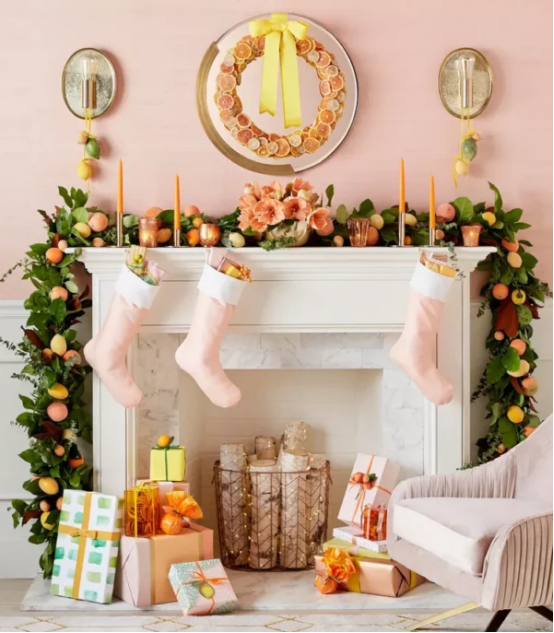 柑橘装饰为节日布置带来了清新而出人意料的转折,提供了一种温暖的地中海风情,而非传统的冬季色调。干橙片、碗中的鲜柠檬、柑橘花环或橙子与丁香制成的装饰品,为你的家增添了香气、色彩和明亮感。这种外观与中性、自然或斯堪的纳维亚风格的内饰完美融合。柑橘色调让人感觉有节日气氛,却完全不依赖任何经典圣诞意象,非常适合那些希望在冬季也能拥有轻盈、阳光般心情的设计爱好者。它令人愉悦、优雅且非常易于重现。