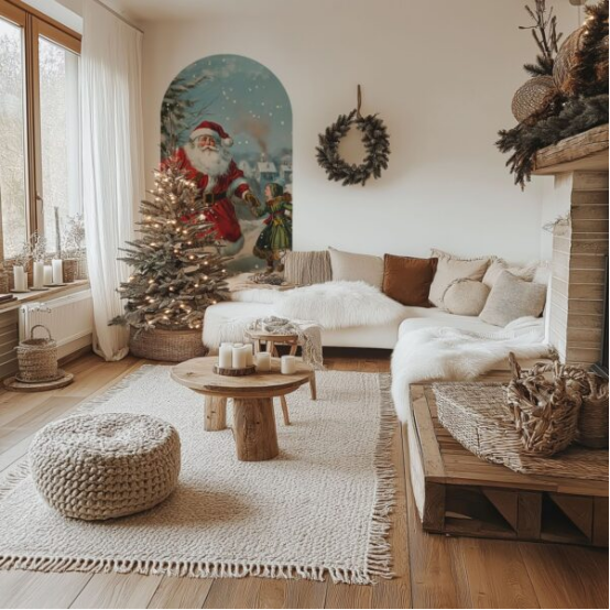 亮红和亮绿暂且退下吧——如今的设计爱好者们正拥抱灰褐色、蘑菇色、奶油色、石色和柔和金属色的冬日调色板。中性节日方案让你日常的装饰得以展现,同时增添一种宁静、冬日的情绪。想想亚麻长袜、陶瓷饰品、哑光金色点缀、粘土花环和柔软的羊毛毯。这种方法创造出一种静谧的优雅,唤起冬日的宁静而非闪耀。中性色调在极简、斯堪的纳维亚风格或有机现代家居中尤其有效,在那里纹理比色彩更能说话。