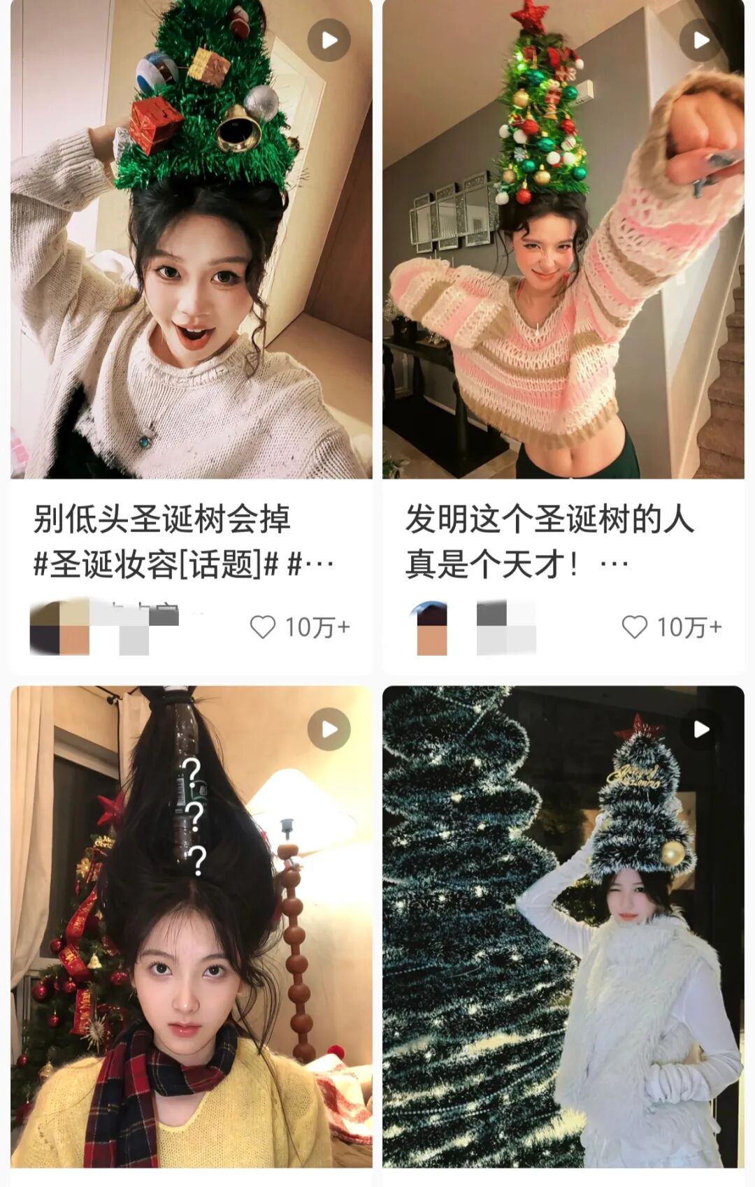 女孩们分享着“头顶圣诞树”打卡和圣诞风穿搭:红绿格纹围巾、白色毛绒外套、带有铃铛元素的饰品。