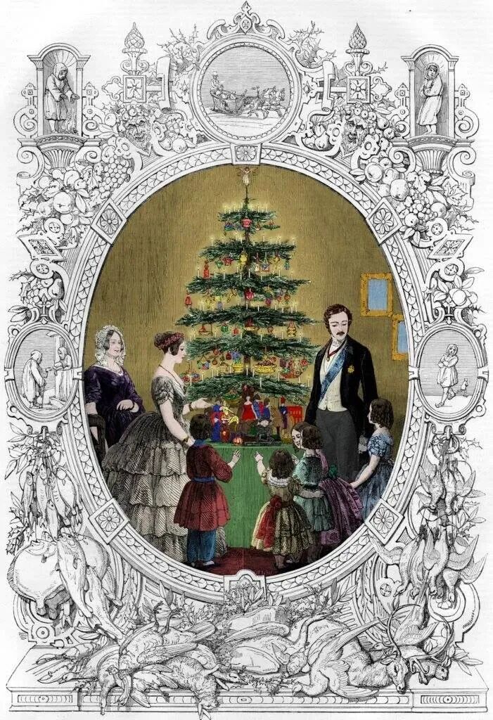 1848年,《伦敦新闻画报》刊登了维多利亚女王一家围绕圣诞树的版画,立即引发了全国性的模仿热潮。