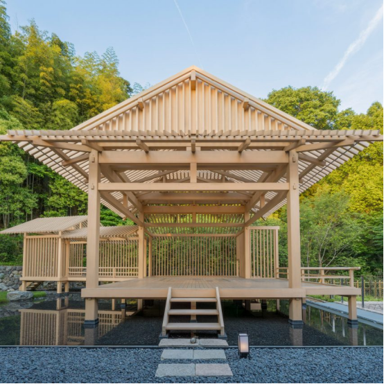 酒店花园中巧妙隐藏了一个由日本扁柏和京都桧木打造的专用舞台,呼应着这门古典日本戏剧艺术。