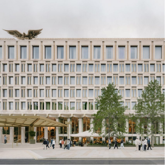 芬兰建筑师埃罗·沙里宁位于伦敦梅费尔的标志性美国大使馆建筑,被本地工作室大卫·奇普菲尔德建筑事务所改造为玫瑰木使馆酒店。