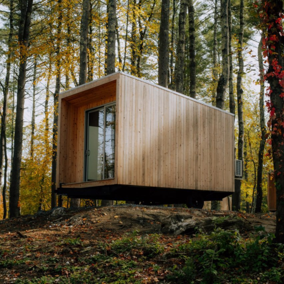 被誉为“全年开放的景观酒店”的伯克希尔展望酒店,由49个预制的雪松木小屋组成,环绕美国马萨诸塞州的一个湖泊而建。