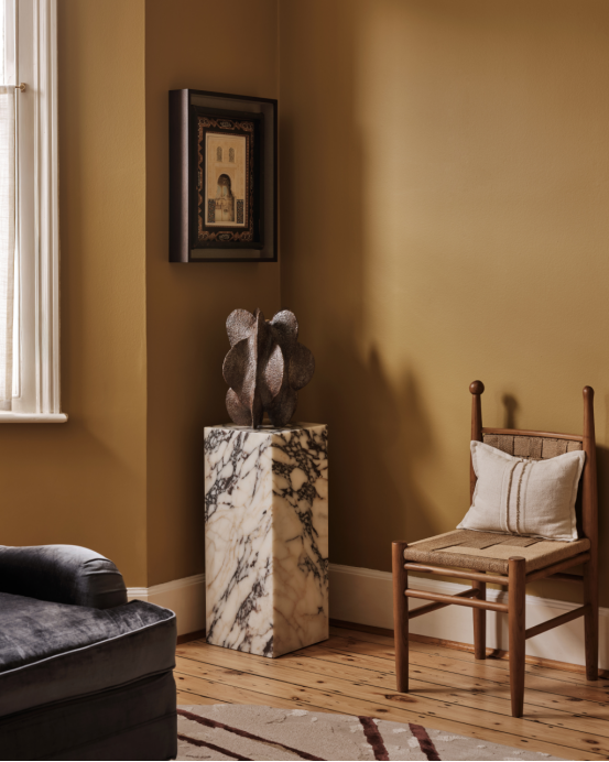 查鲁·甘地精心策划的伦敦租赁住宅中一处浓郁金色的小景。