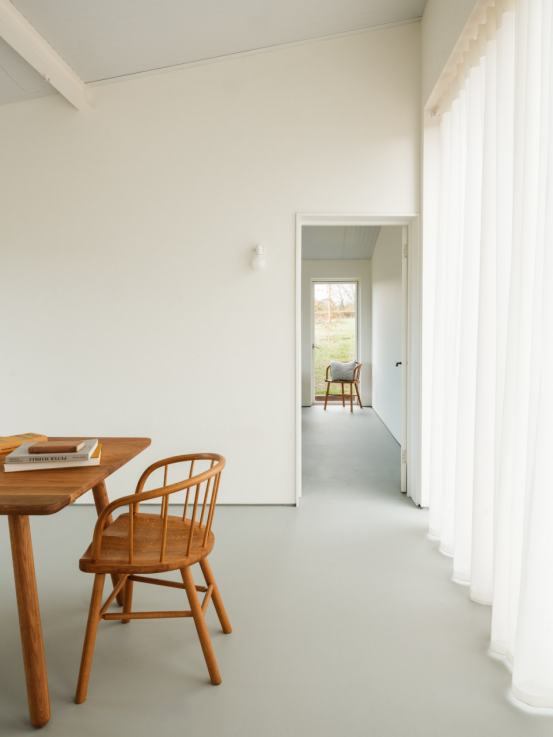 在这座位于英国多塞特郡的前拖拉机棚改造的住宅中,建筑师奥利弗·宾德洛斯和乔治·道斯将室内完全涂成了白色。