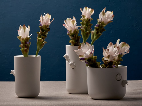 这种柔和、空灵的白色表面处理,强调形态而非装饰,让曲线、轮廓和纹理成为主角。无论是哑光陶瓷、手拉坯炻器还是磨砂玻璃制成,这些单品都作为微妙的锚点,在充满色彩和图案的空间中营造出令人平静的视觉停顿。即使是一只「云上舞白」的花瓶,也能为玄关台或边几增添一抹宁静的现代感。