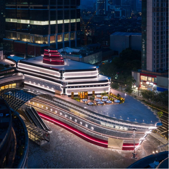 这座位于上海中心的新地标是一座船形概念店,外覆印有路易威登标志性monogram图案的金属表皮。