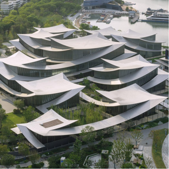 由建筑事务所Aedas设计的「有湖博物馆」以其起伏的屋顶为特色,形似一个由两个相互扣连的圆环构成的无限循环。