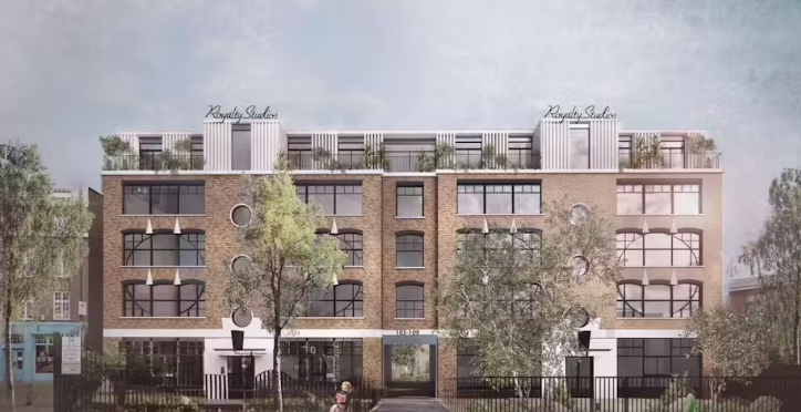 Mike McMahon 工作室为诺丁山Royalty Studios提出的改造方案,其特色是一个带有凹槽触感墙体的"当代皇冠"。