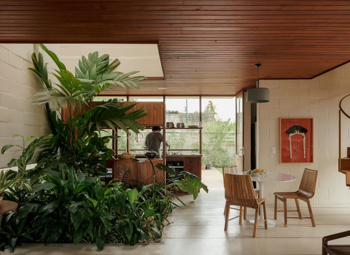 圣保罗公司 Arquipélago Arquitetos 在巴西设计的这所房子,拥有郁郁葱葱的内部庭院,展示了在室内使用真实植物的美感。