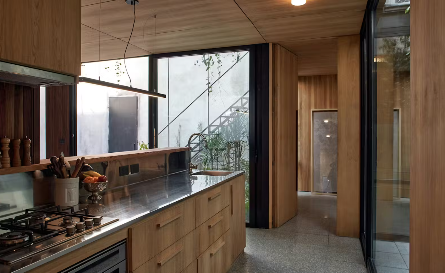 建筑师 Nicolás Tovo 和 Teresa Sarmiento 在布宜诺斯艾利斯市中心为他们的家庭创造了一个充满绿意的绿洲——一个颂扬与场所连接的空间。